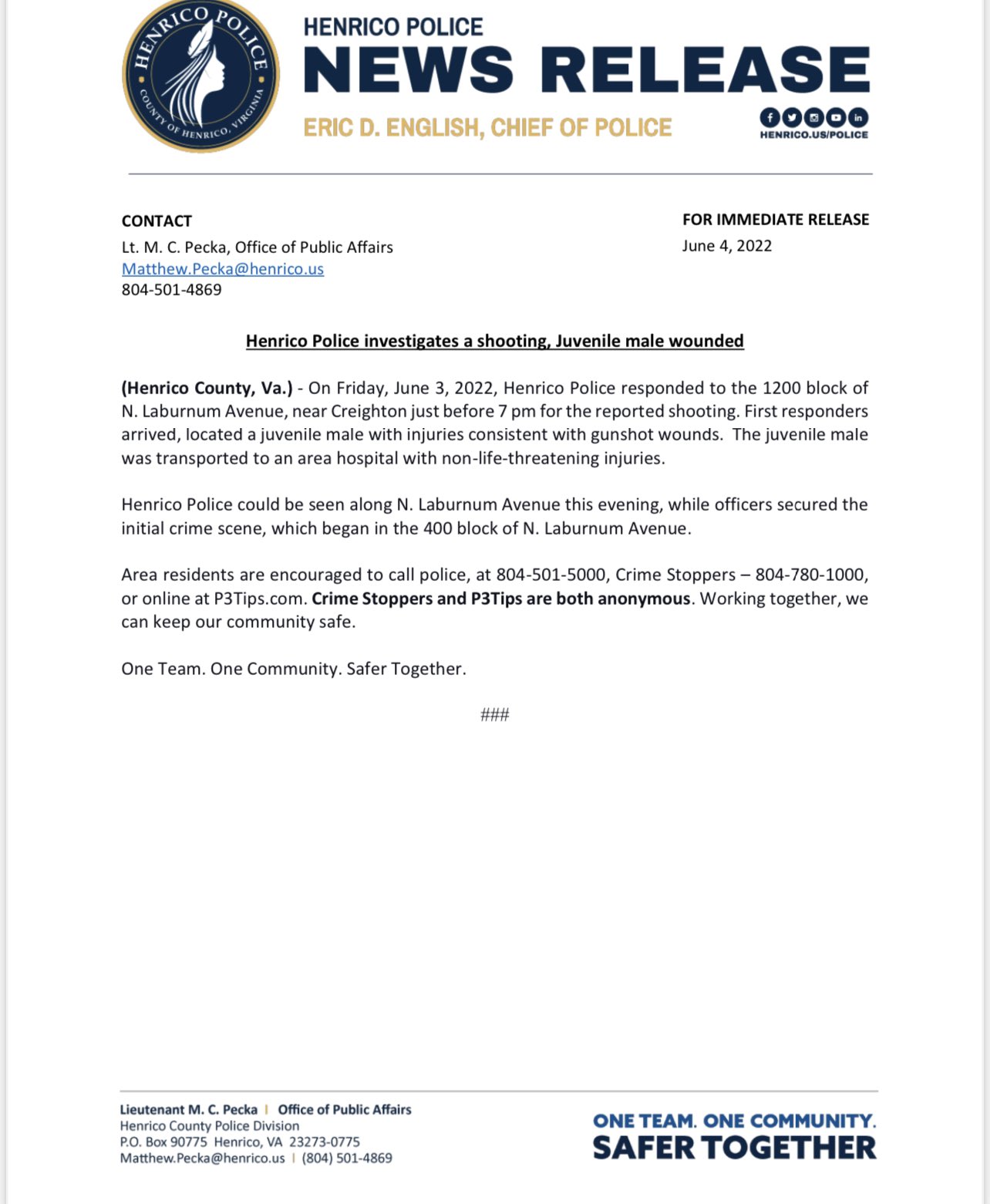 Weba student suspected in a shooting at the university of virginia that left three members of the football team dead and two others injured is in custody, officials. Webtwo people were killed and five others wounded on tuesday during a shooting outside a high school graduation ceremony in richmond, virginia, police said. Oct 3, 2024 / 10:11 pm edt. (wric) — a man is fighting for his life after a thursday night shooting in henrico county. Weba gunman opened fire as hundreds of people stood outside after a high school graduation ceremony tuesday evening in richmond, virginia, killing two people. Webofficers say they responded at 7:10 p. m. To a business in the 5100 block of nine mile road for a report of a shooting. Police said officers located a potential crime. Webpolice respond to a shooting at vcu medical center north in richmond, va. , on wednesday. Wwbt boisseau, 24, of henrico, was taken into custody and. Webhenrico county police are investigating three weekend shootings that left three people dead — including a girl at a shopping center — and two others injured. (wric) — the henrico county police division has released more information related to saturday night’s shooting that left multiple people.